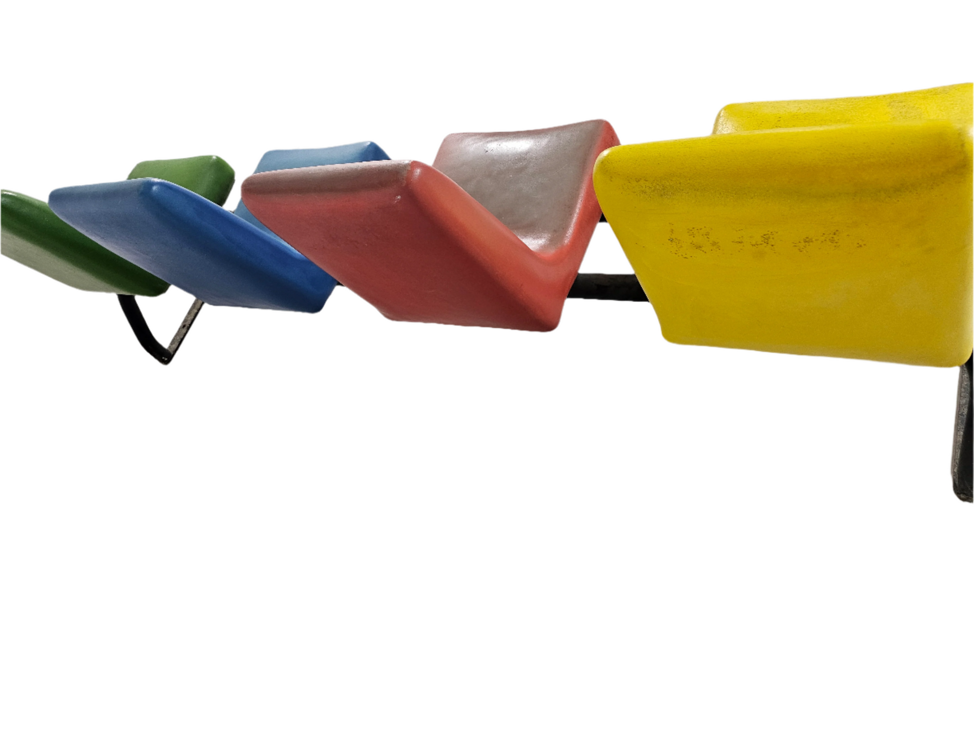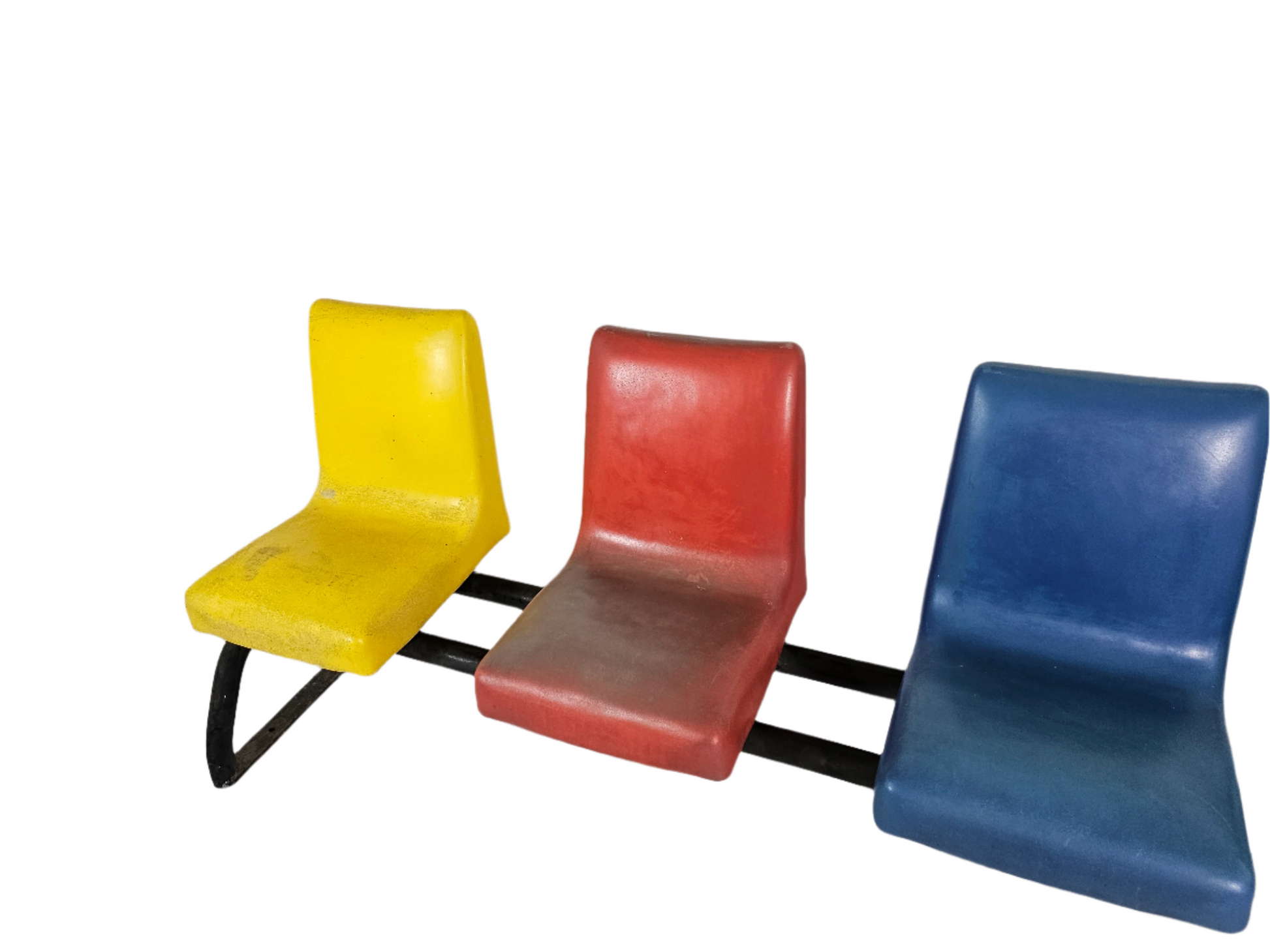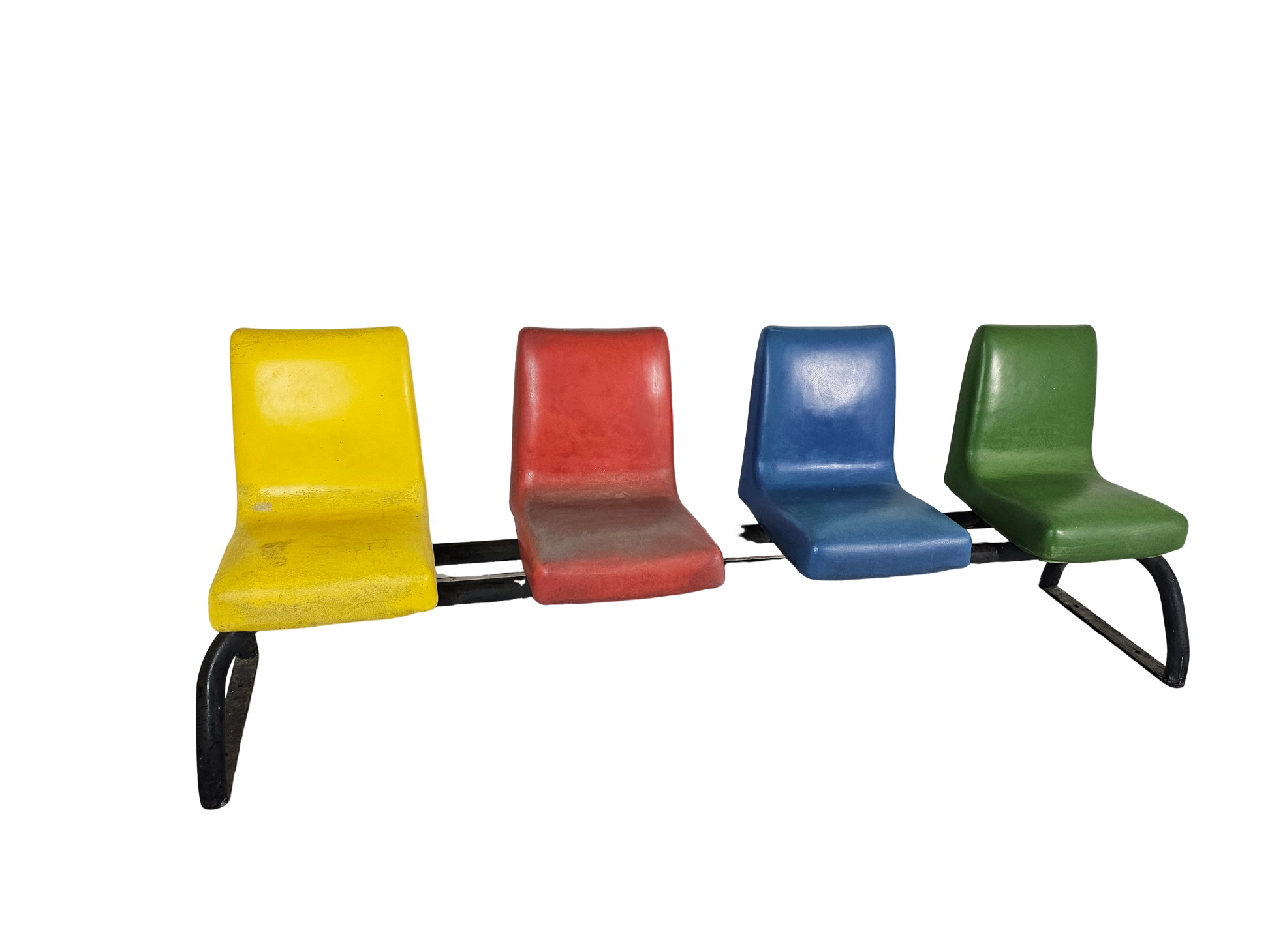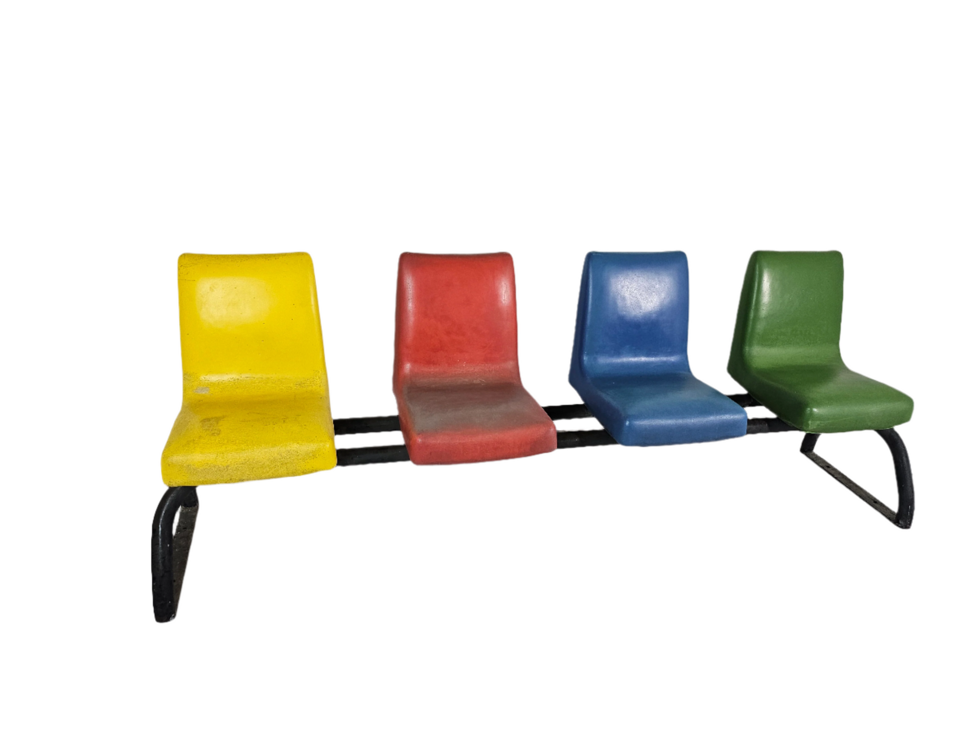 I bought this bench at an estate sale. Owners told me they bought the house in 1960 and the bench was already at the garden of the house. So, the bench must be from 1940 as when they build the house. It’s a really well made bench, is made out of soft rubber, colors are still bright no tears at all, the base is solid iron is extremely heavy even though the bench is for outdoors is attractive enough to use it indoors.