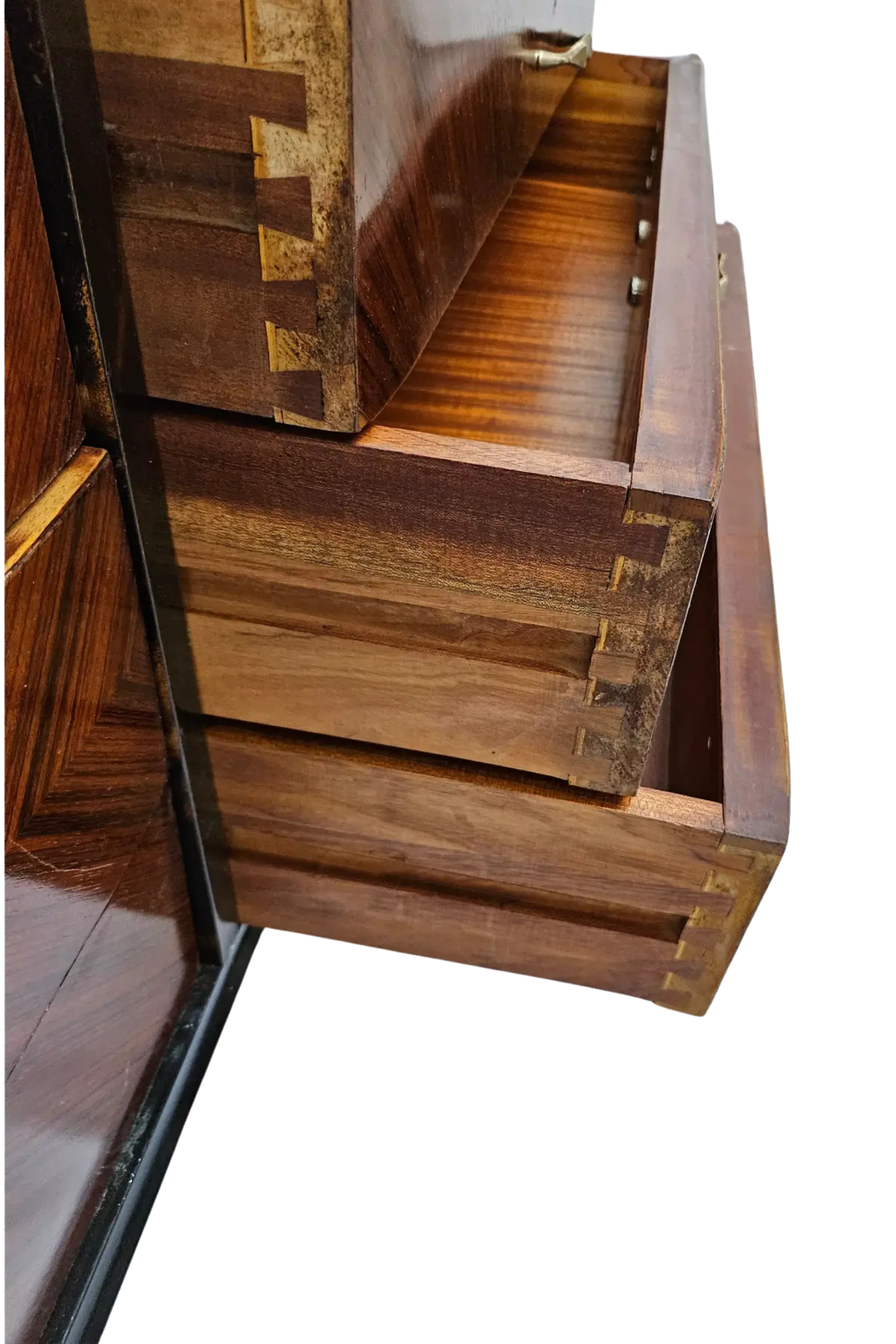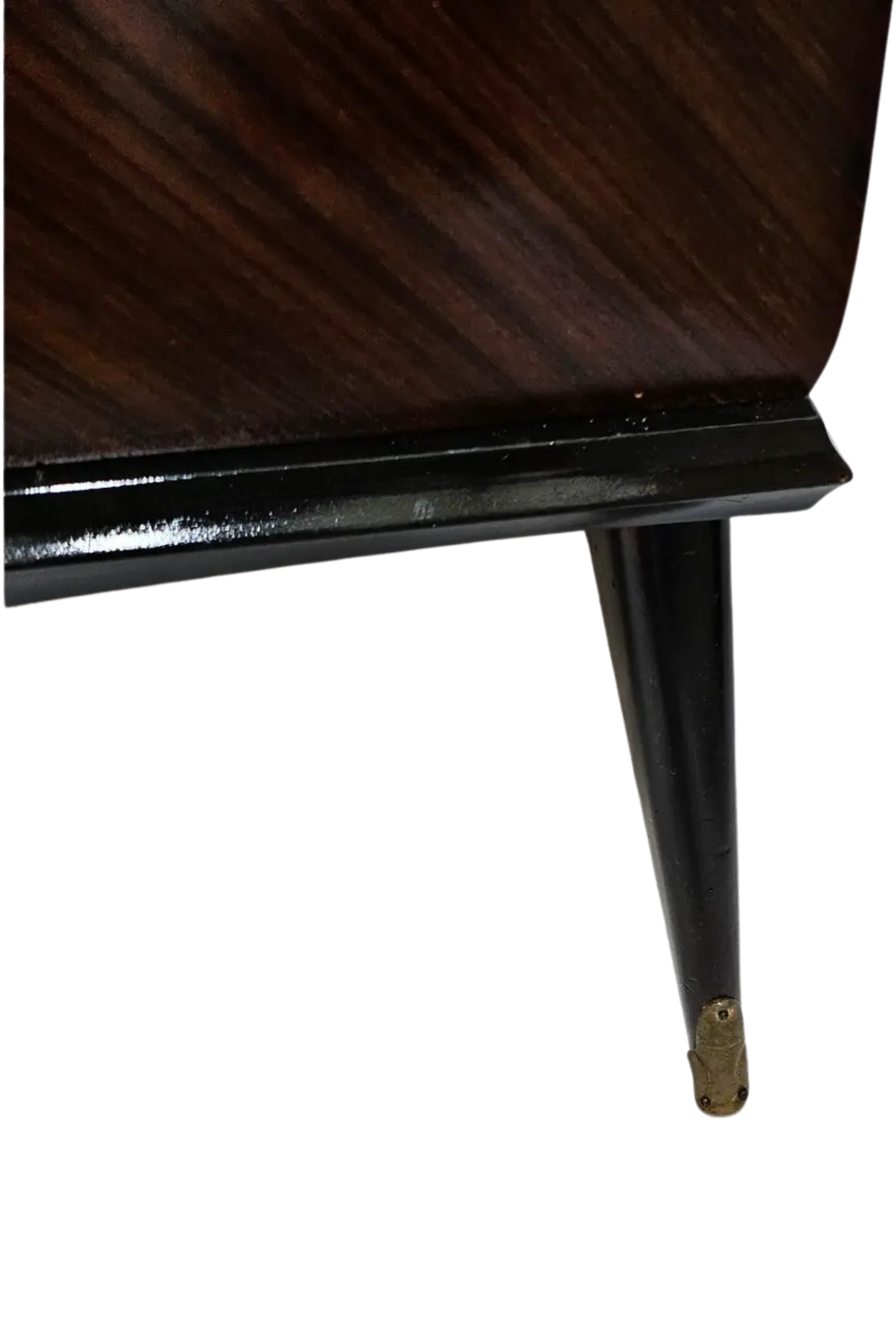 Dresser made out of rosewood brass handles and feet tips. Top is marble like glass all in perfect condition, finish is still shiny. Circa 1950s