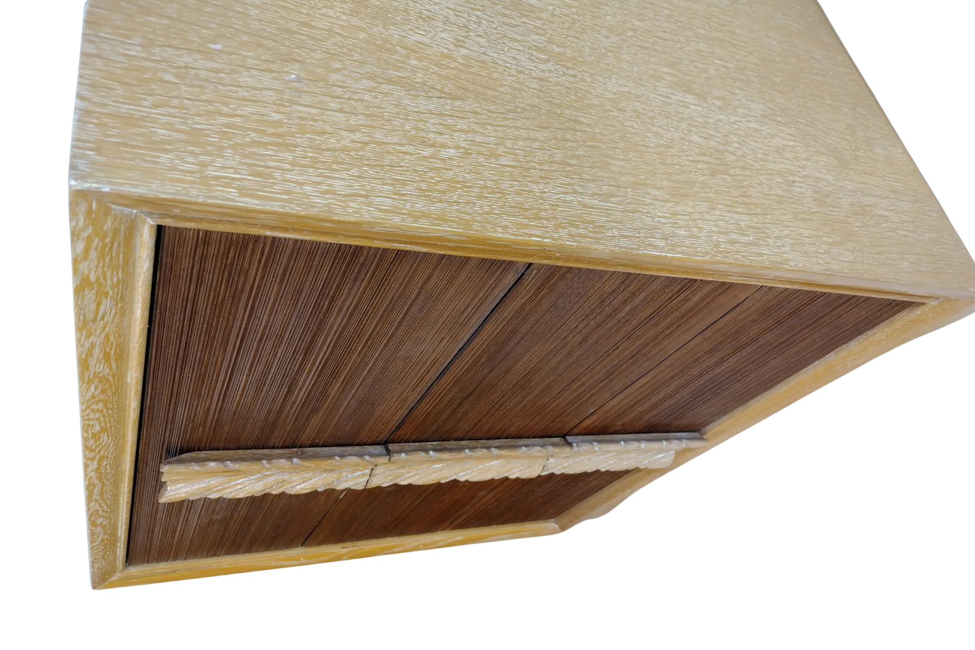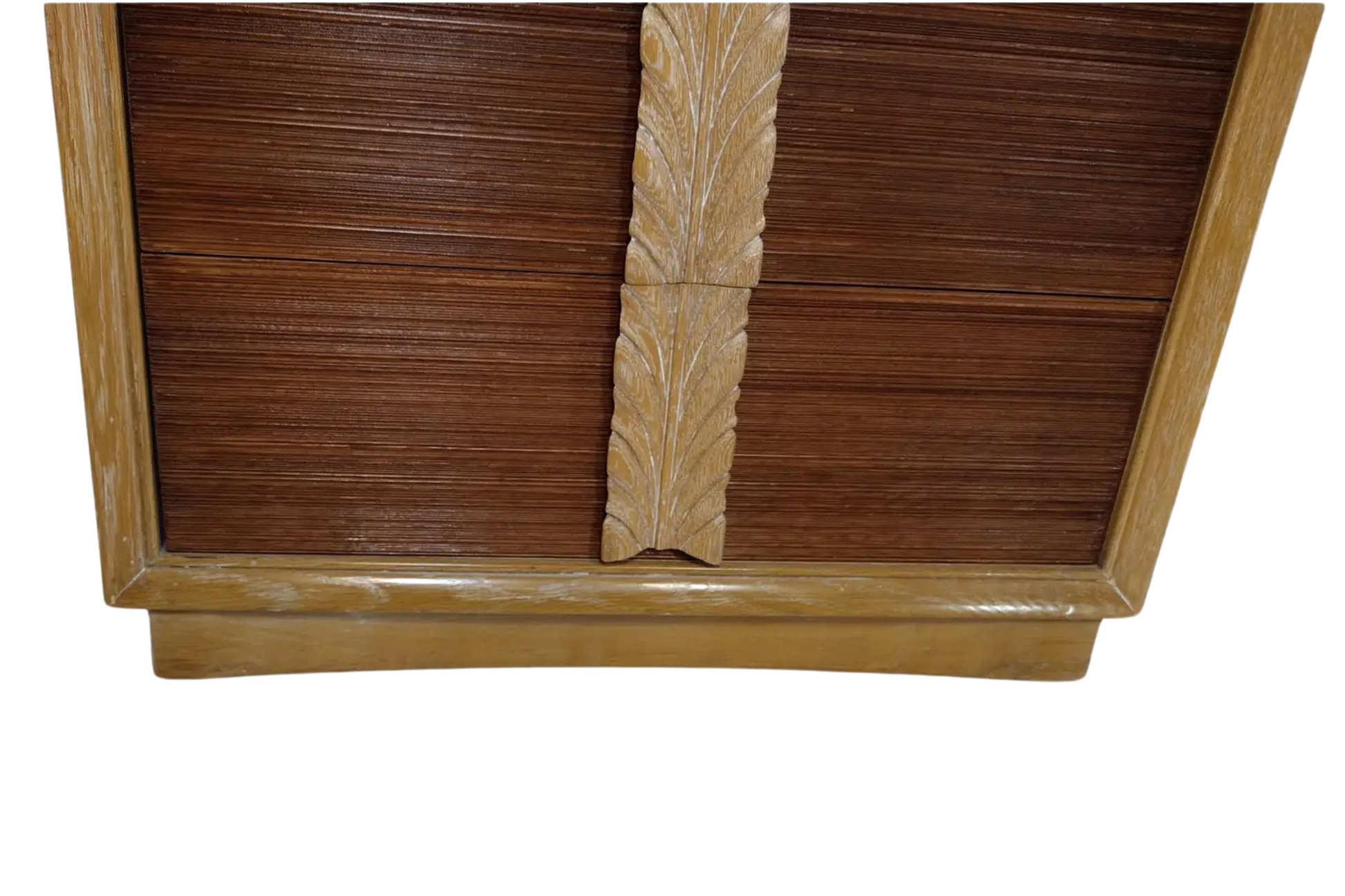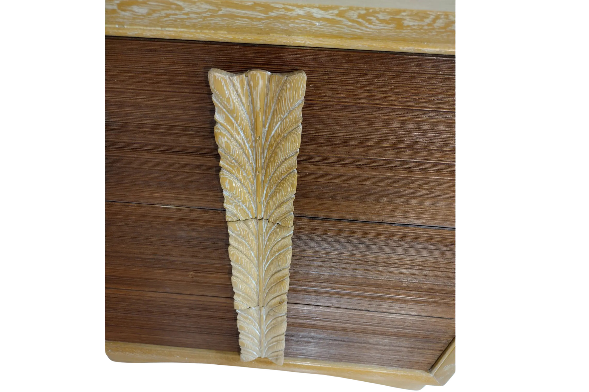 Pair of chests with drawers made by Carr-oaken company. Made out of oak, professionally refinished in a ceruse finish. They have the style of the Paul Frankl furniture with the combed wood on the drawer fronts. Circa 1960.