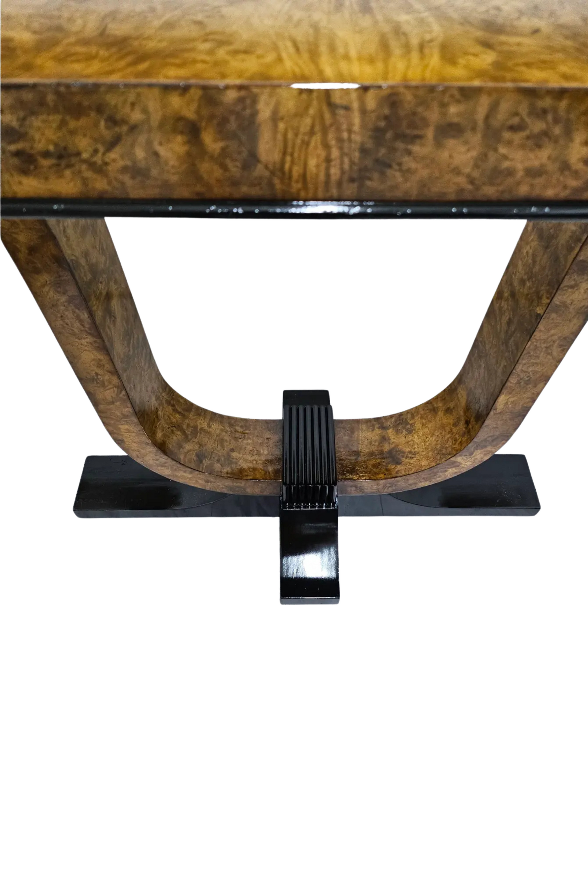 Beautiful console table, the burl wood makes it very attractive. It's been refinished. It’s part of the John Richards collection who makes quality furniture sold at well-known galleries and department stores like Bloomingdales. Circa 1980's made in Vietnam.