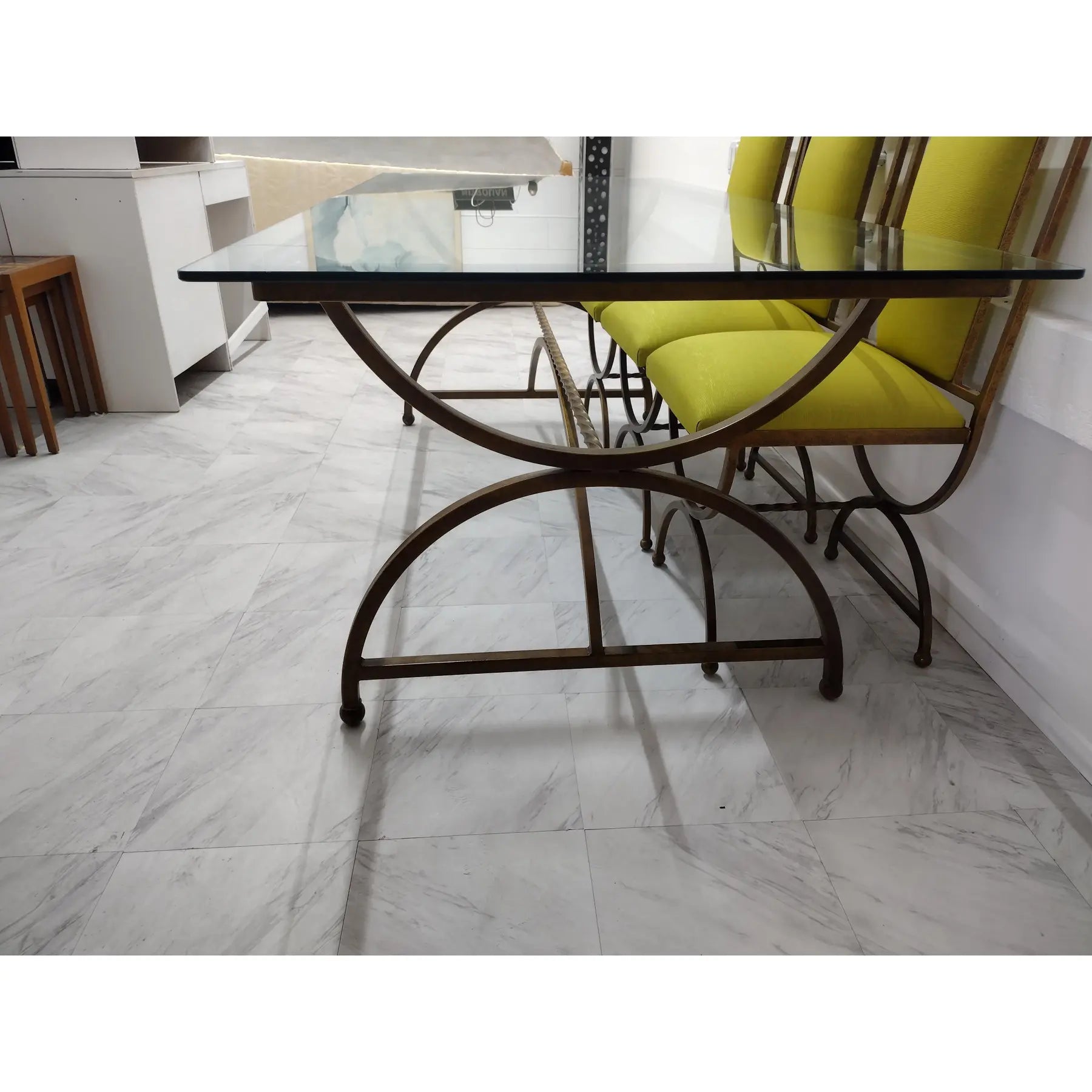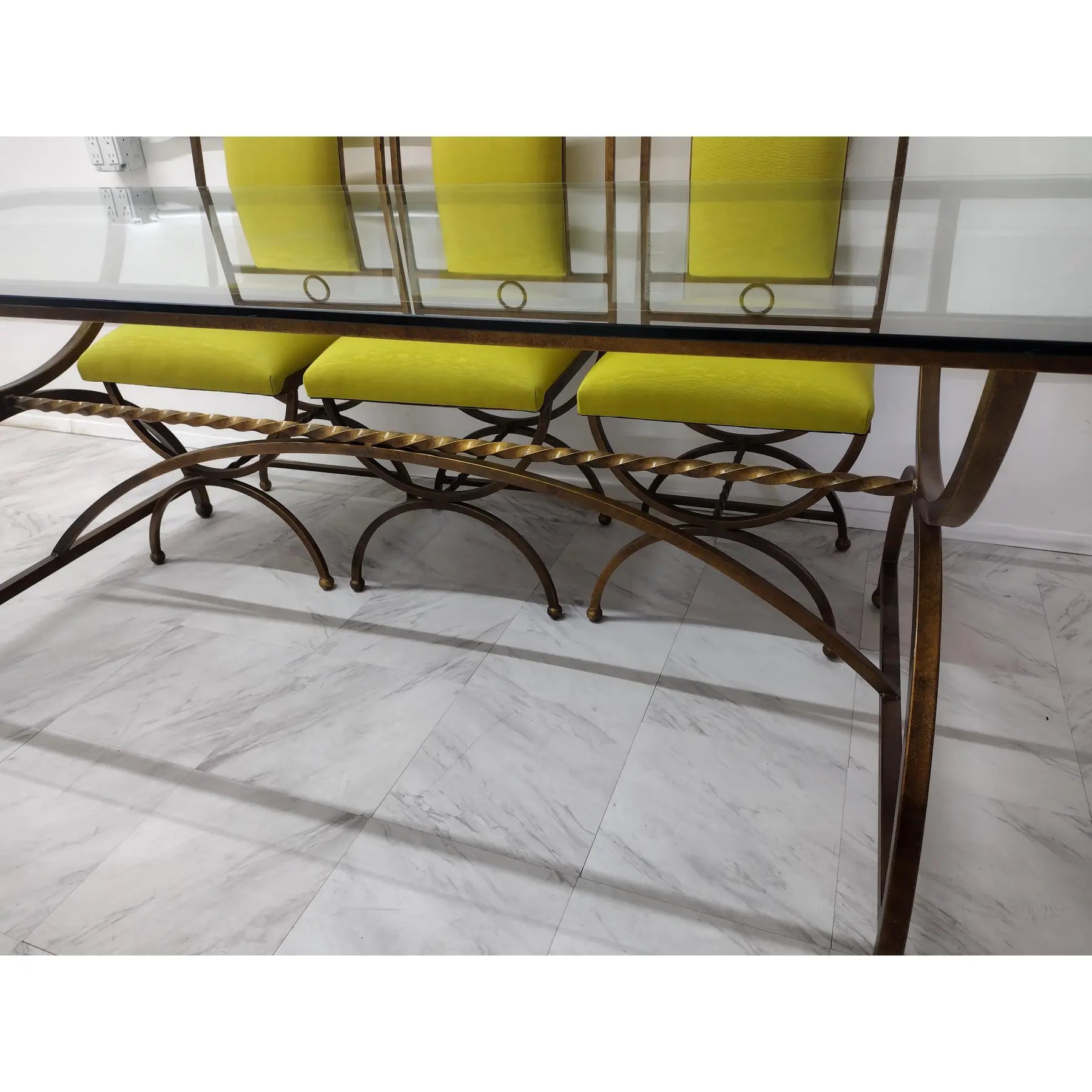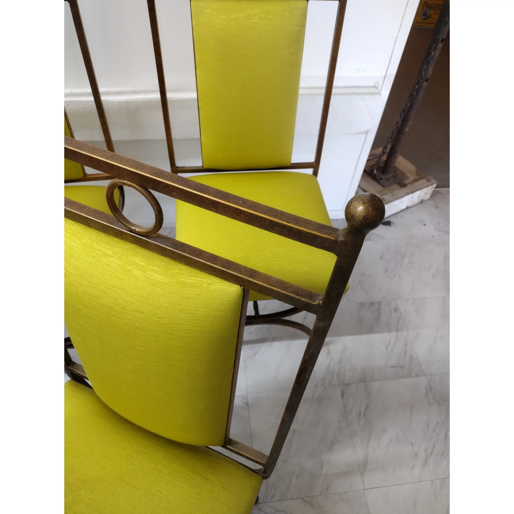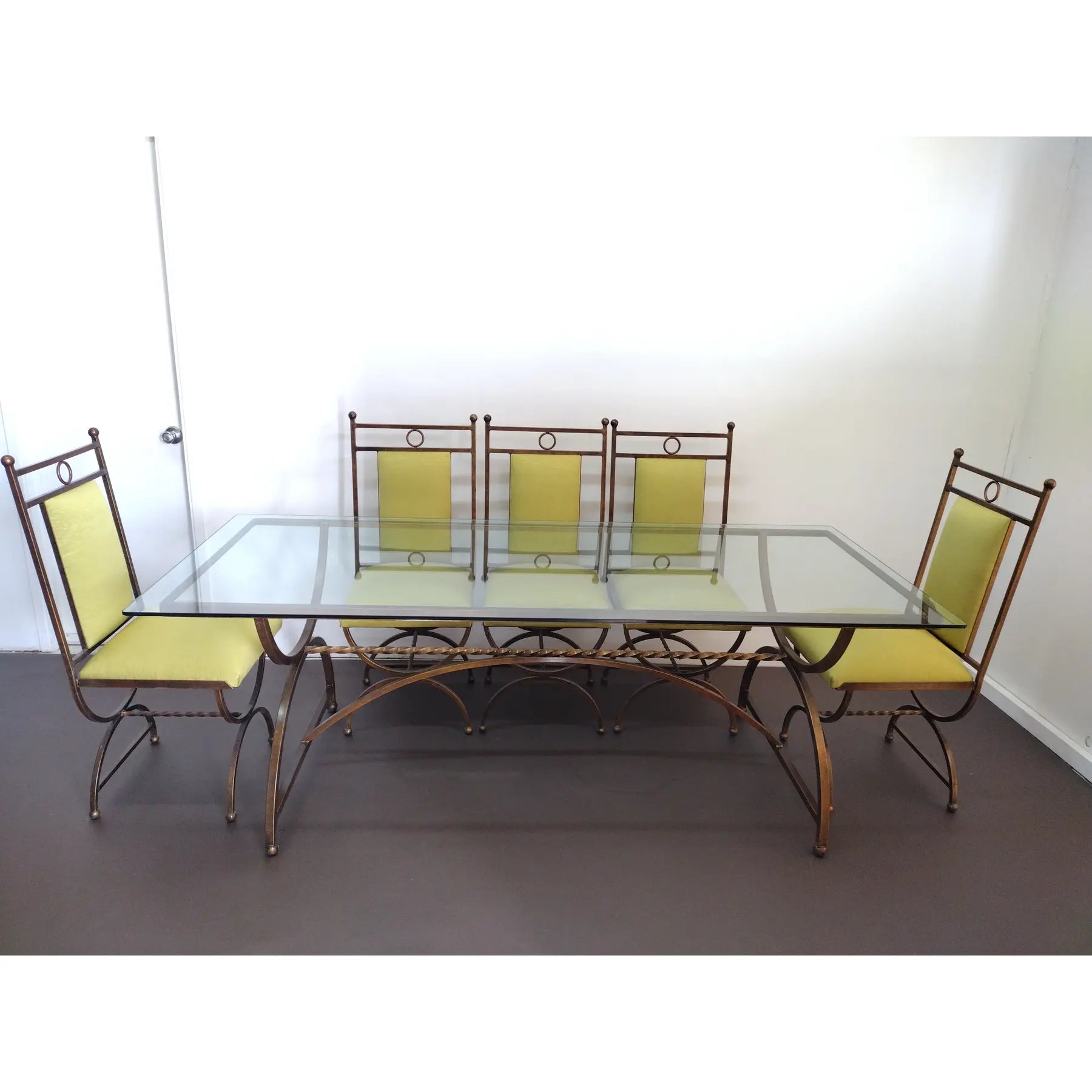 Condition Notes: Dining set is in perfect condition. Metal is very clean; no nicks or scratches and upholstery is new.