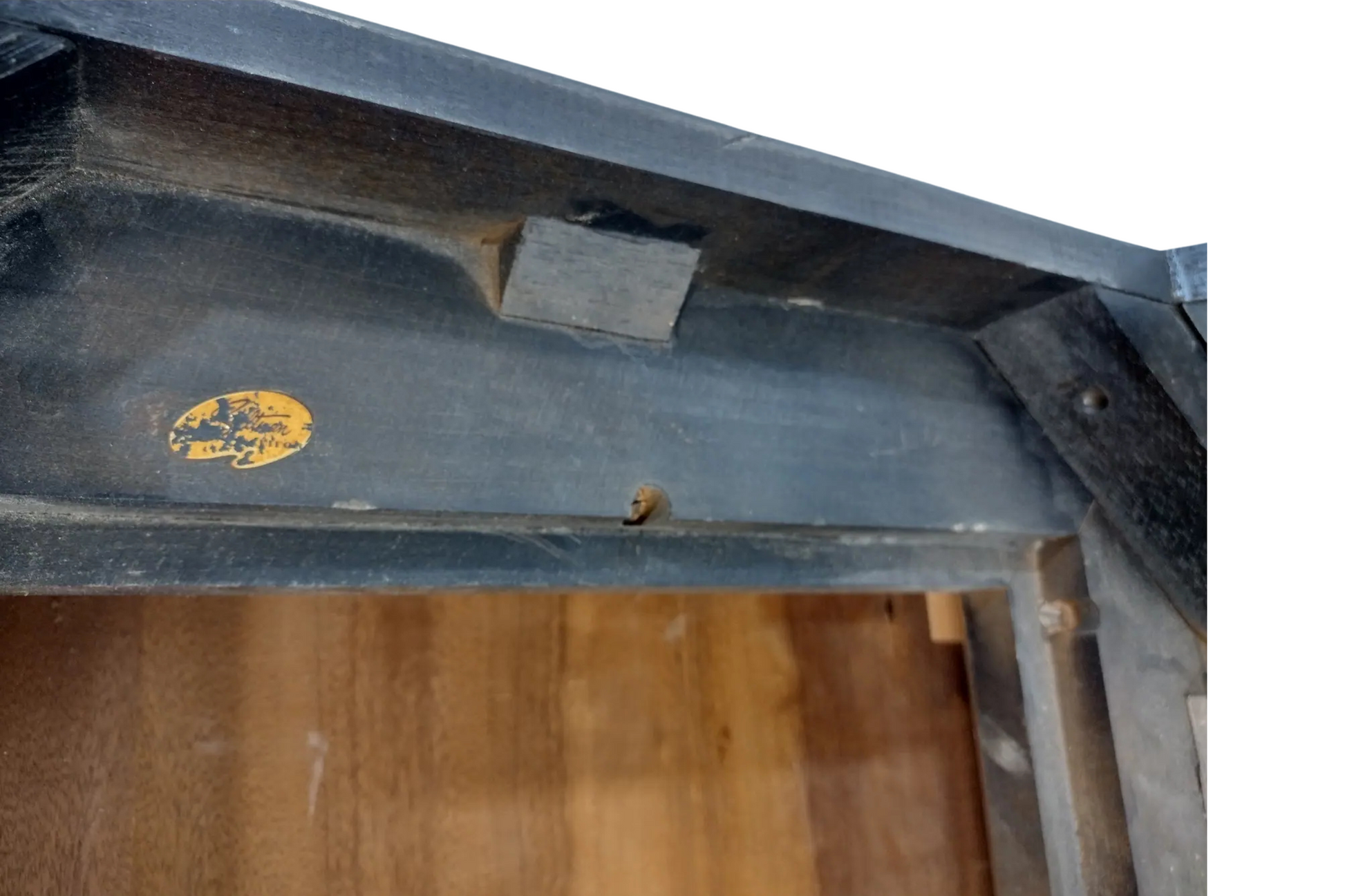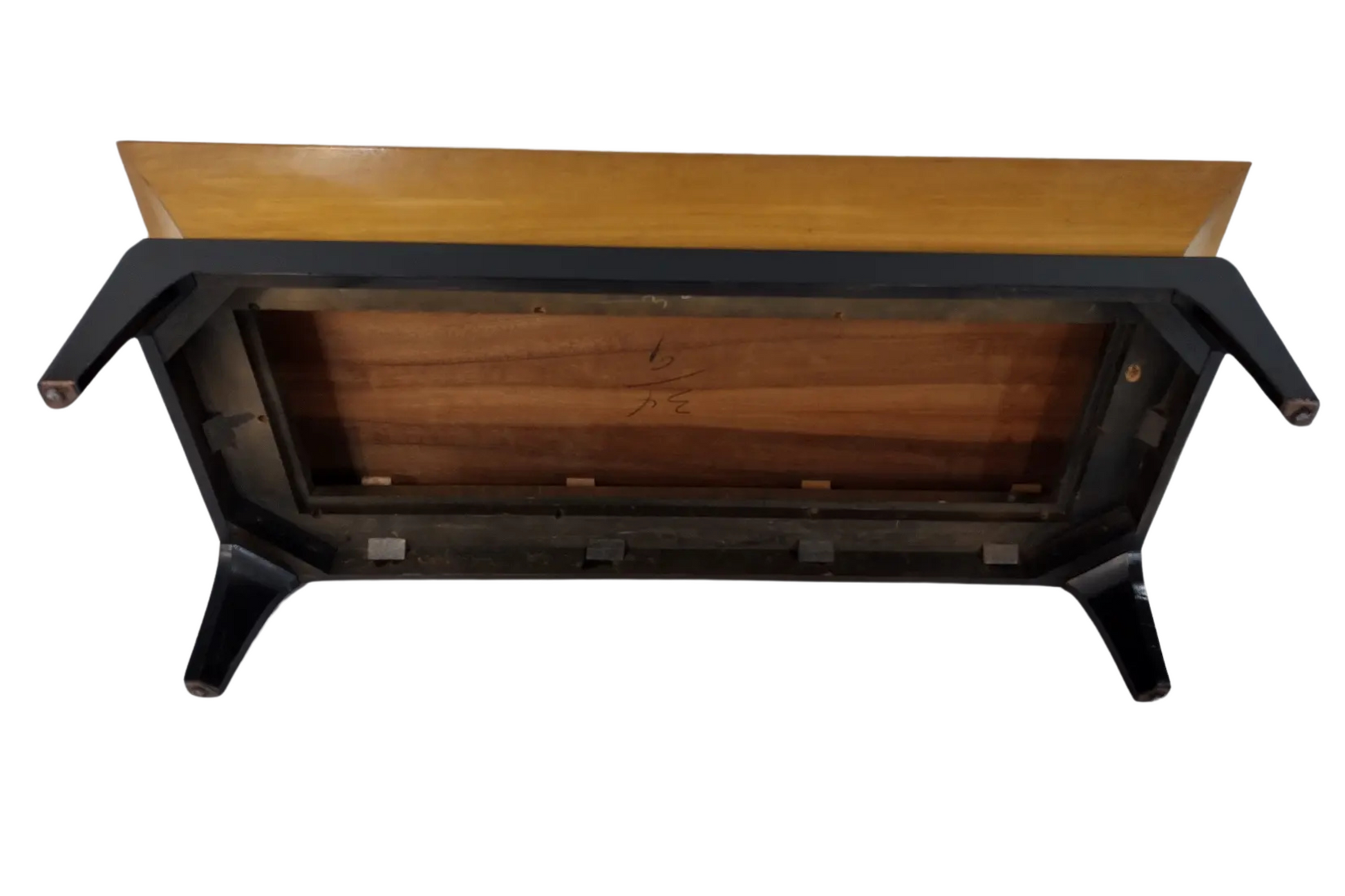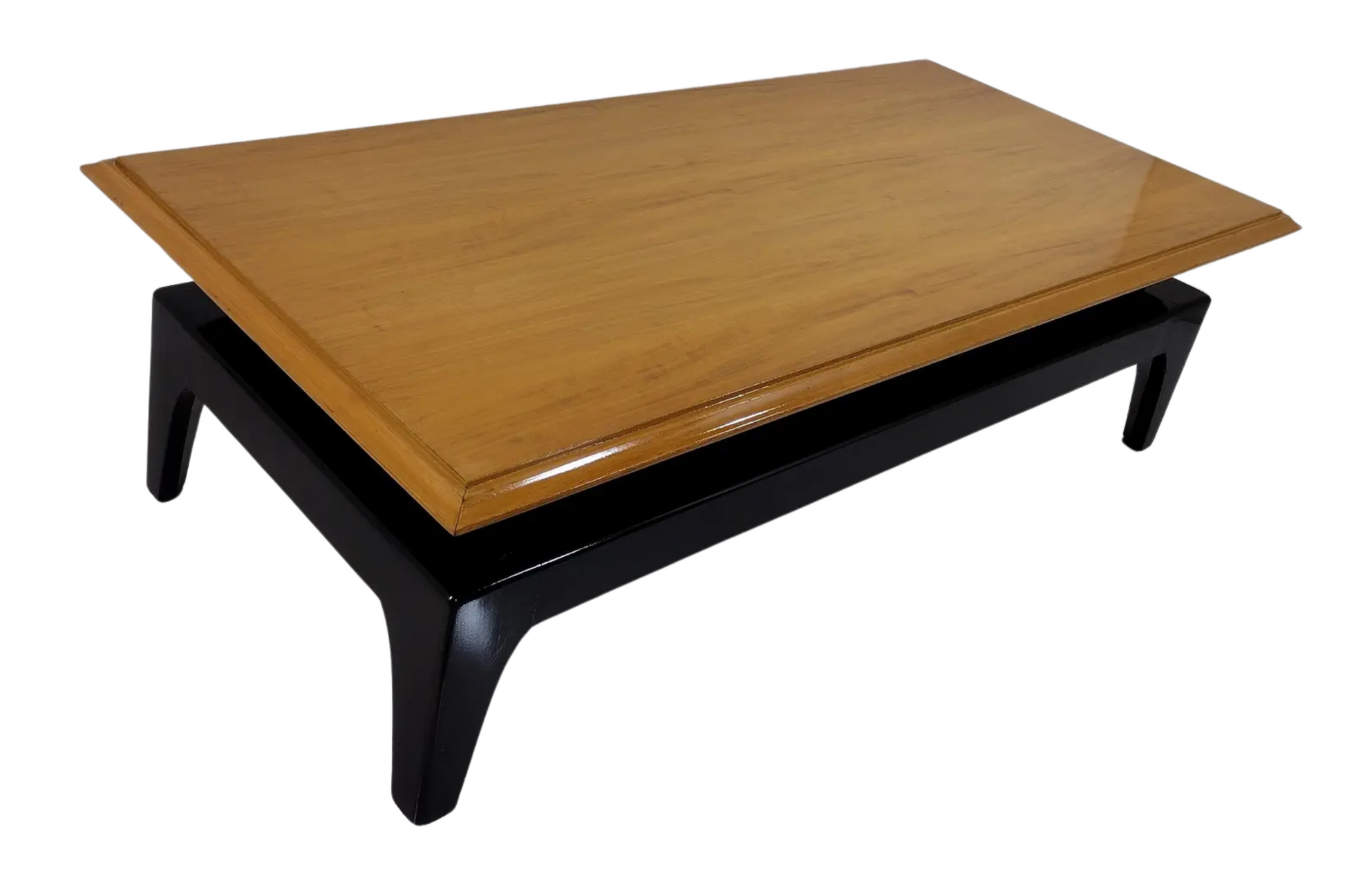 Rare coffee table designed by Paul Laszlo for Brown Saltman. Top wood is primavera base is wood in a black stain. Very clean it's been refurbished. Circa 1950.